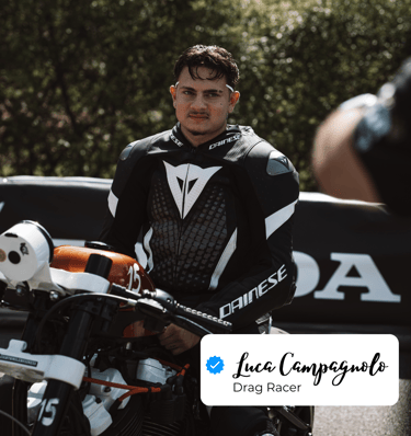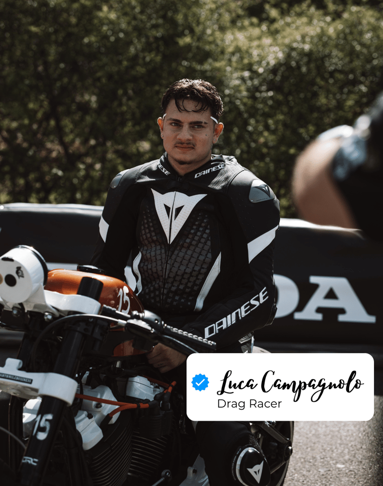 Als ausgebildeter Motorradmechatroniker auf dem Weg zum Meistertitel verbindet Luca handwerkliche Präzision mit technischer Innovation. Seit 2024 ist er aktiv in der europäischen Drag Racing-Szene unterwegs – mit messbaren Erfolgen: Beim legendären Glemseck 101 International Sprint erreichte er 10,6 Sekunden auf der Achtelmeile und sicherte sich Platz 3 gegen die europäische Elite.